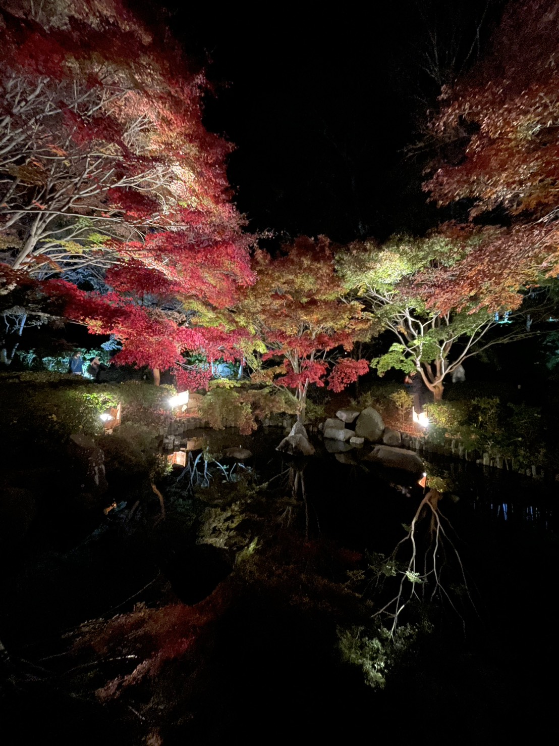 紅葉ライトアップへ行ってきました。池に映る紅葉がとっても綺麗でした。